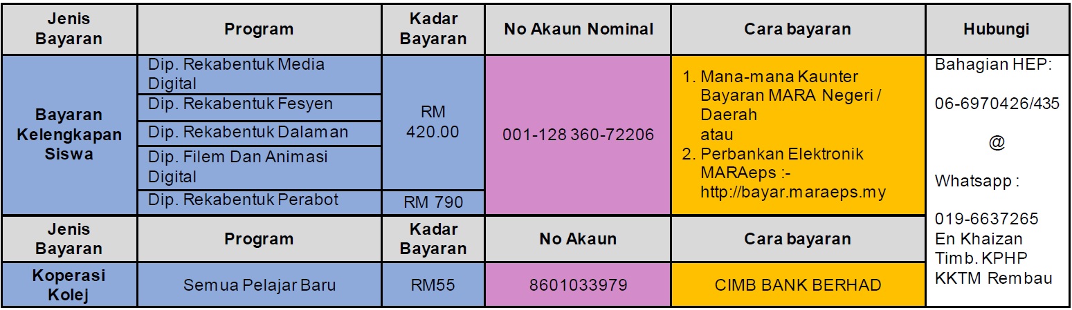 * Sila pastikan pembayaran di atas dibuat sebelum tarikh pendaftaran dan resit bayaran